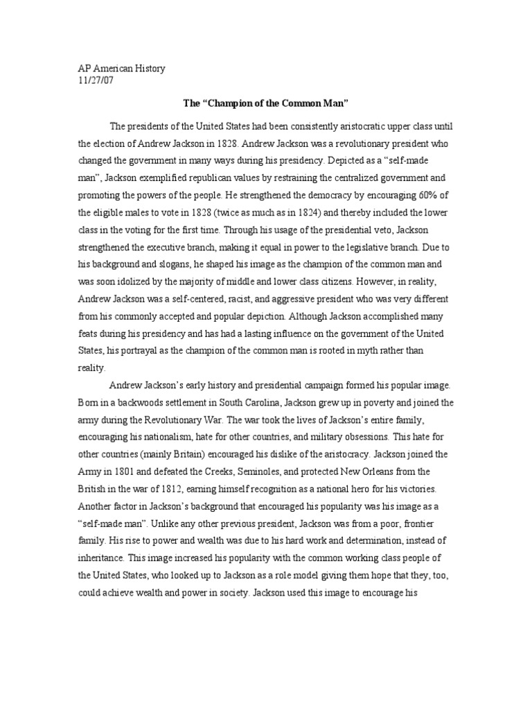 Calculate the price of your order Type of paper needed:. Pages: words. You will get a personal manager and a discount. Academic level:. We'll send you the first draft for approval by September 11, at AM. Total price:. The price is based on these factors:, essay on andrew jackson. Cheap essay writing sercice If you need professional help with completing any kind of homework, Success Essays is the right place to get it. Cheap paper writing service provides high-quality essays for affordable prices It might seem impossible to you that all custom-written essays, research papers, essay on andrew jackson, speeches, book reviews, and other custom task completed by our writers are both of high quality and cheap.